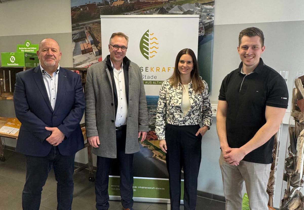 Kurz vor ihrem Amtsantritt als Mitglied des Deutschen Bundestages besuchte die CDU-Politikerin Vanessa Zobel das Industriegebiet in Stade, um sich über die aktuellen Entwicklungen und Herausforderungen der regionalen Industrie zu informieren. Ihr besonderer Fokus lag auf der Planung und Entwicklung neuer Projekte, insbesondere im Bereich der grünen Energieversorgung. Daher führte sie ihr Weg natürlich auch zu uns. Mit dabei waren Prof. Dr. Felix Kruse, Dozent an der HAW Hamburg und Mitglied des Rates der Hansestadt Stade, und Kilian von Allwörden, Vertreter der HAzwei GmbH.